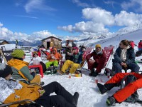 Mittags trifft man sich für eine kleine Rast auf einer Hütte, ehe man nachmittags in kleinen oder größeren Gruppen wieder auf den Pisten unterwegs ist.
