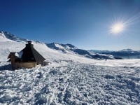 Nachmittags finden sich immer ein paar Leute zusammen, die in kleinen Gruppen noch ein paar Touren fahren, ehe wir uns gegen Liftschluss an unserer gebauten Schneebar treffen um die letzten Sonnenstrahlen zu erwischen.
